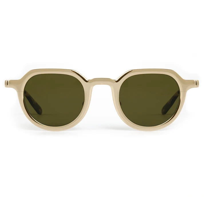 Krewe Galvan in 12K Chroma + Iberia. The most innovative frame yet. GALVAN is in a league of its own, blending modern innovation with old-world craftsmanship for a truly one-of-a-kind frame. The convexed, stainless steel construction features our signature mirrored finish (known as Chroma) that you won’t find anywhere else. GALVAN features a small to average look that is both striking and surprisingly wearable at the same time.