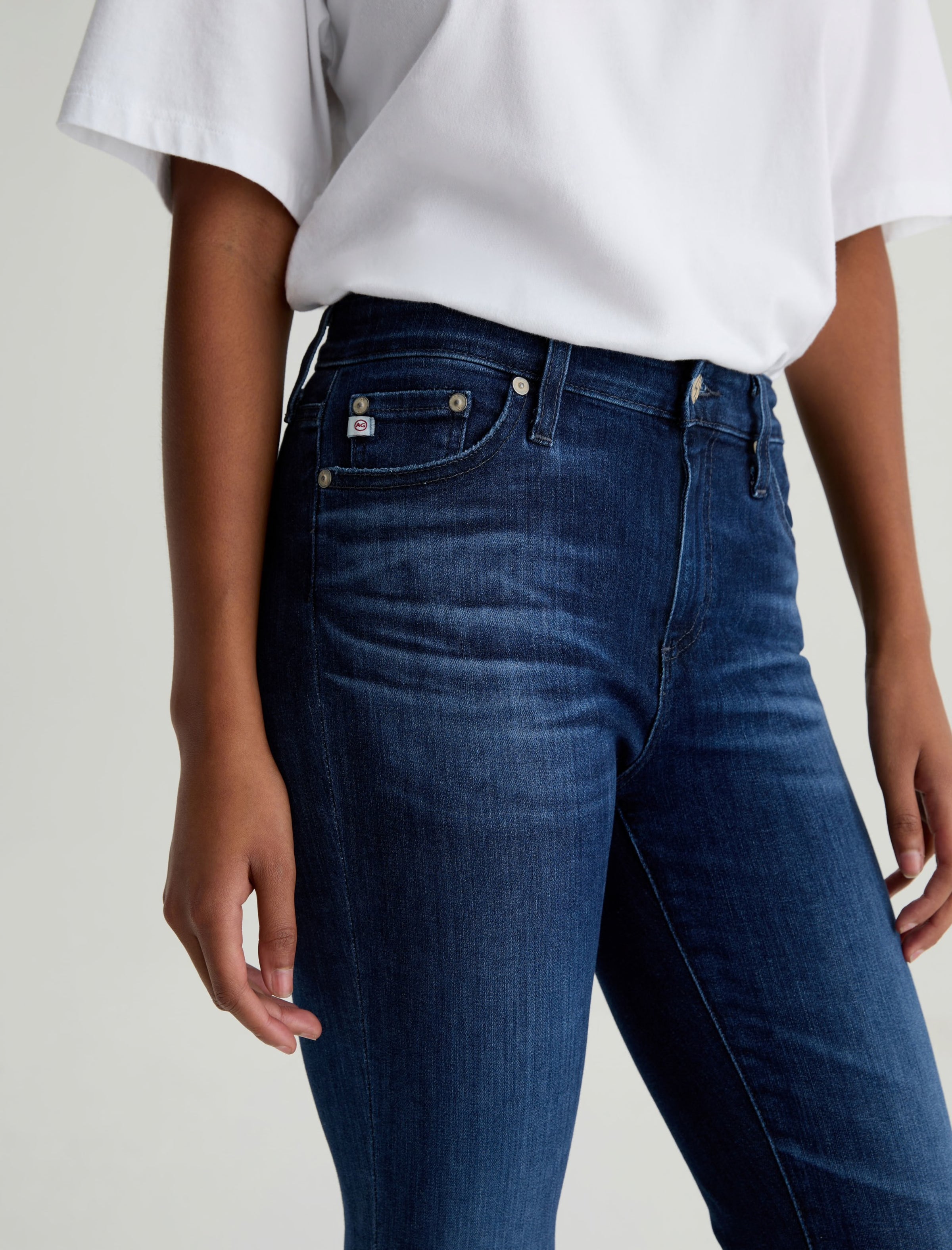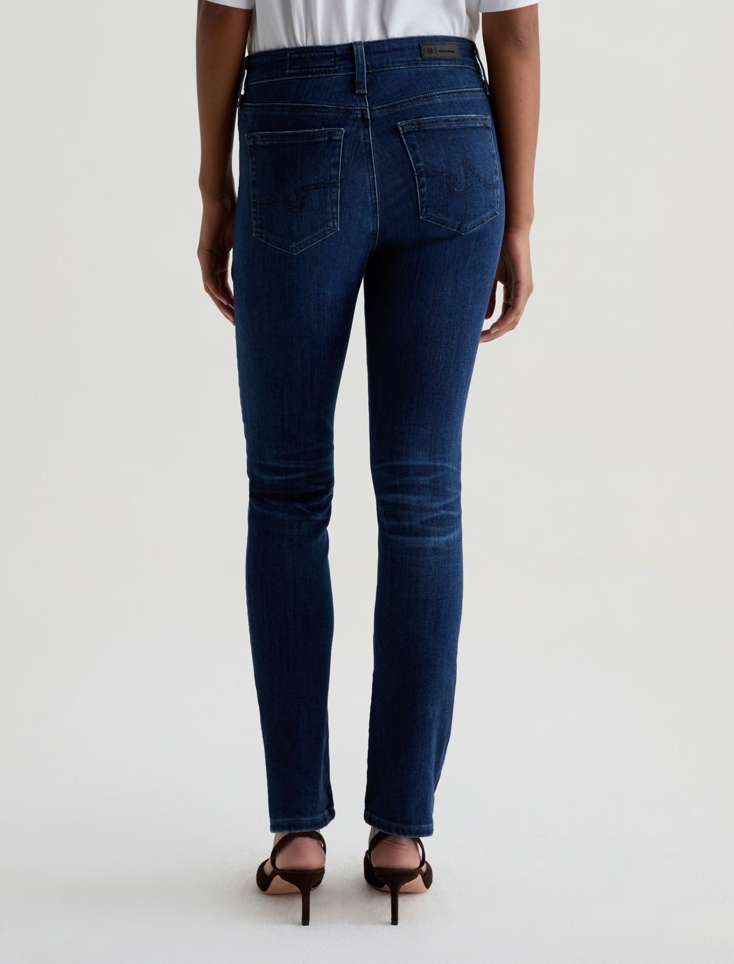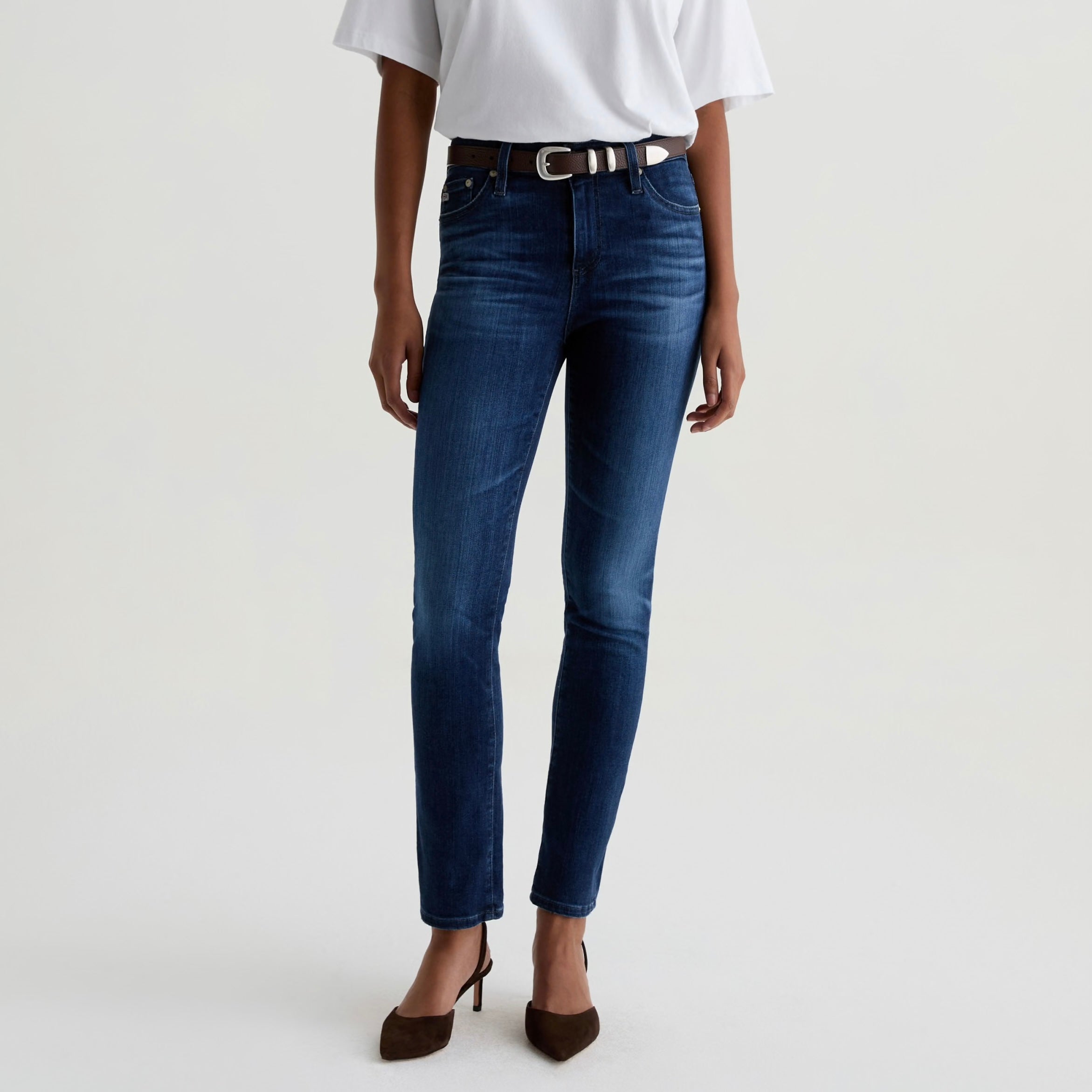 AG Mari Straight Jeans in 5 years blue essence. Our popular Mari mid-rise straight leg jean for women is featured here in an AG-ed™dark indigo wash with fading and whiskering to emulate 5 years of wear. The style fits easy around the hips before falling to a straight-leg silhouette that slims down a bit at the leg opening. This women’s jean is designed in 9.5 oz. Premiere Stretch Indigo Denim that offers easy movement and an extra-comfortable feel.