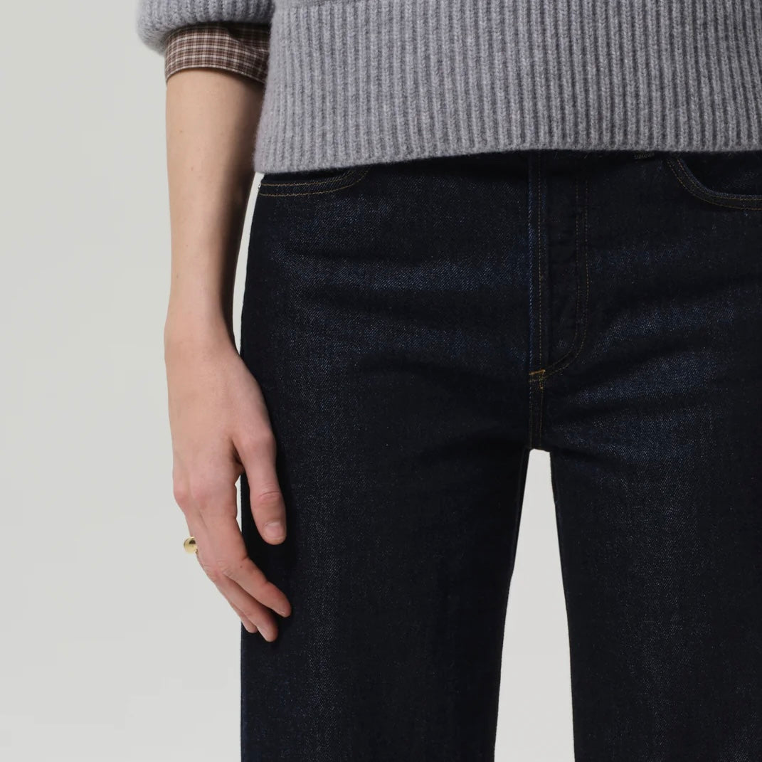 Citizens of Humanity Annina Jean in Juno. Designed with a high rise and full-length 33" inseam, the ‘Annina’ jean offers an elongated, straight-leg silhouette with a refined drape. The ‘Juno’ wash—a clean, deep indigo—is crafted from weightless, non-stretch regenerative denim washed down for an exceptionally soft feel. Style with an oversized blazer or tucked-in knit for understated polish.