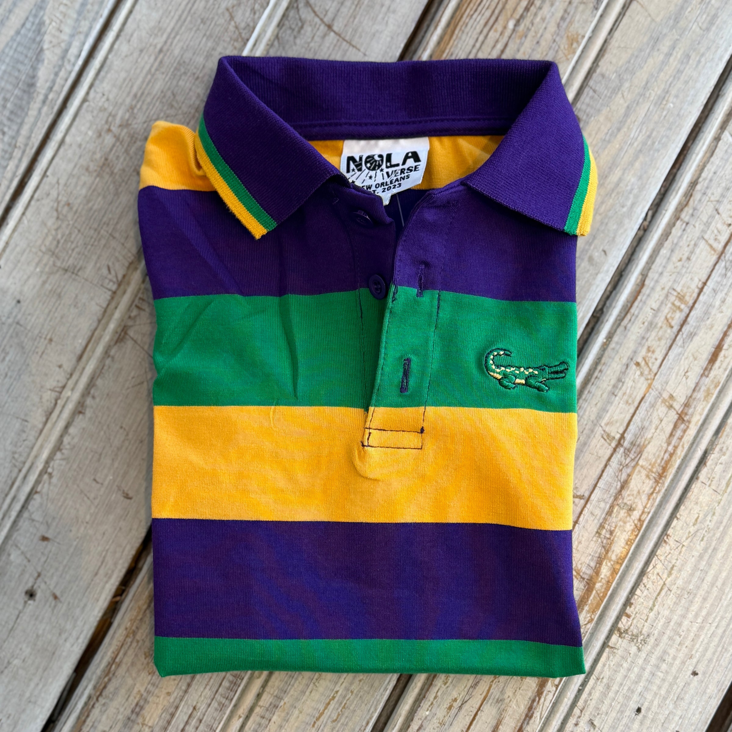 Kids Mardi Gras Shortsleeve Rugby polo.