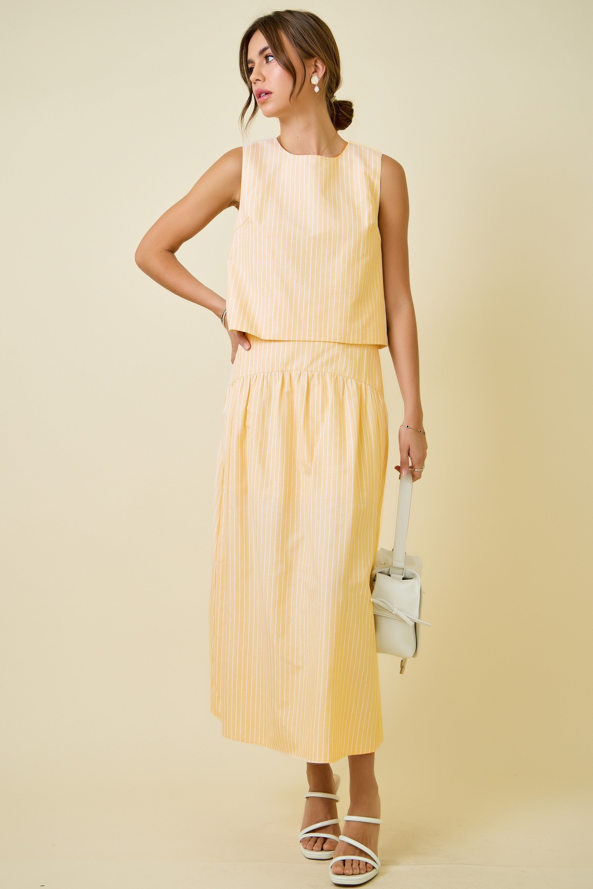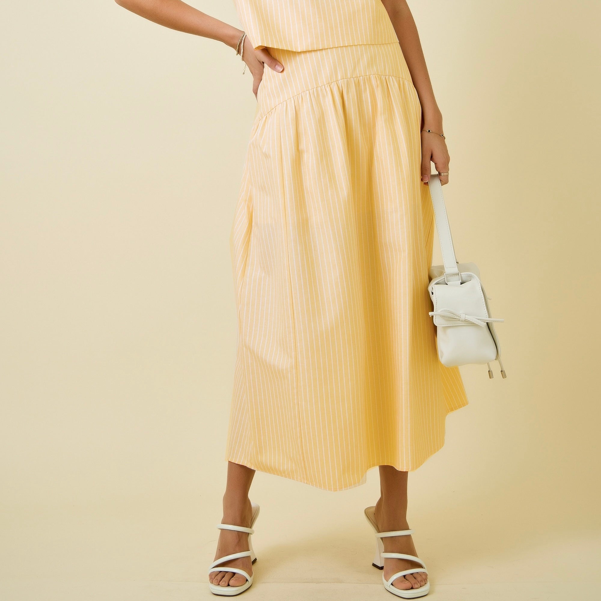Day + Moon Yellow and White Striped Skirt. Matching top sold separately.