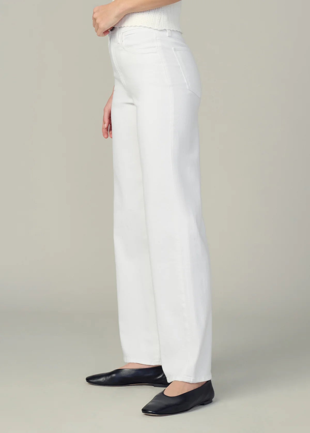Joes Jeans Mia Wide Let Jean Petite in White. A high rise and slim fit through the waist and hip with a full-length wide leg, perfectly proportioned for 5'4" and under.
