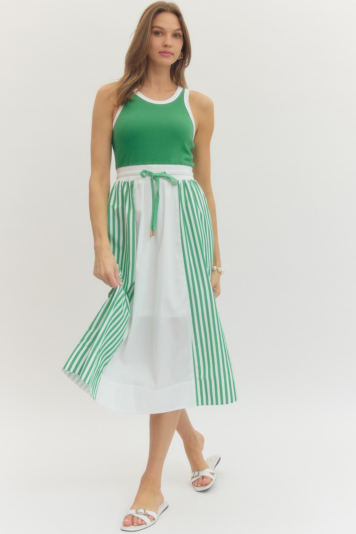 Green and White Tank Midi Dress.