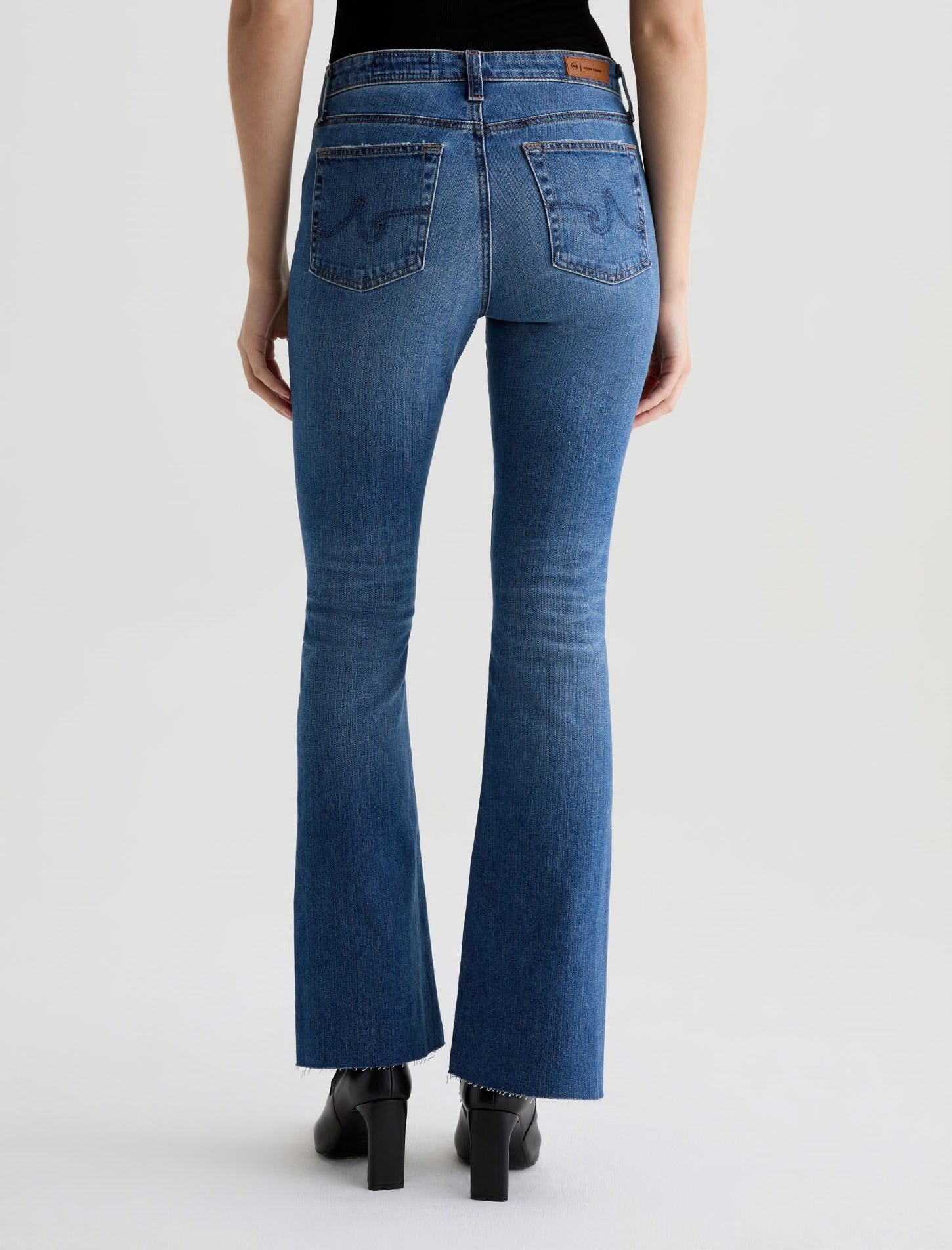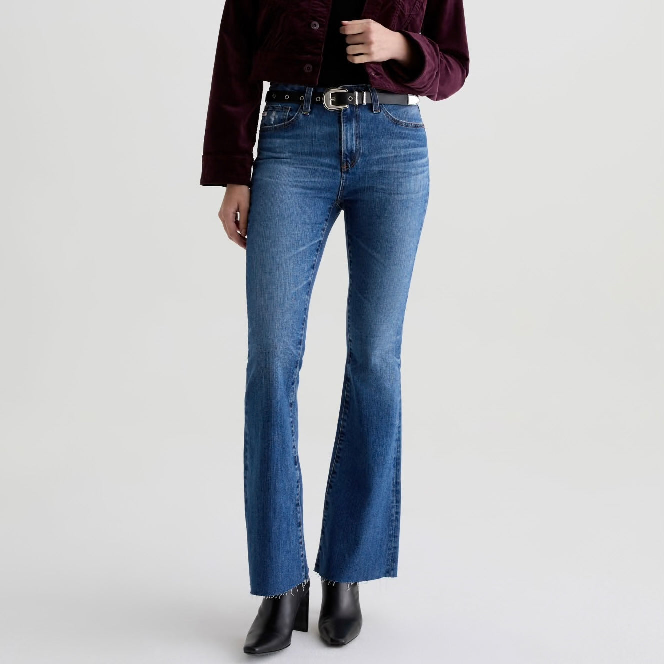 AG Farrah Boot in 15 Years Prague. The Farrah Boot is a bootcut jean with a mid-rise waist and flattering silhouette. Features a fitted hip and thigh with a subtle flare from the knee down. Crafted from Lead Denim, 11 Oz. for all-day comfort and style. Shown here in 15 Years Prague, AG-ed™ to emulate 15 years of wear—offering rich character and an authentically broken-in feel.