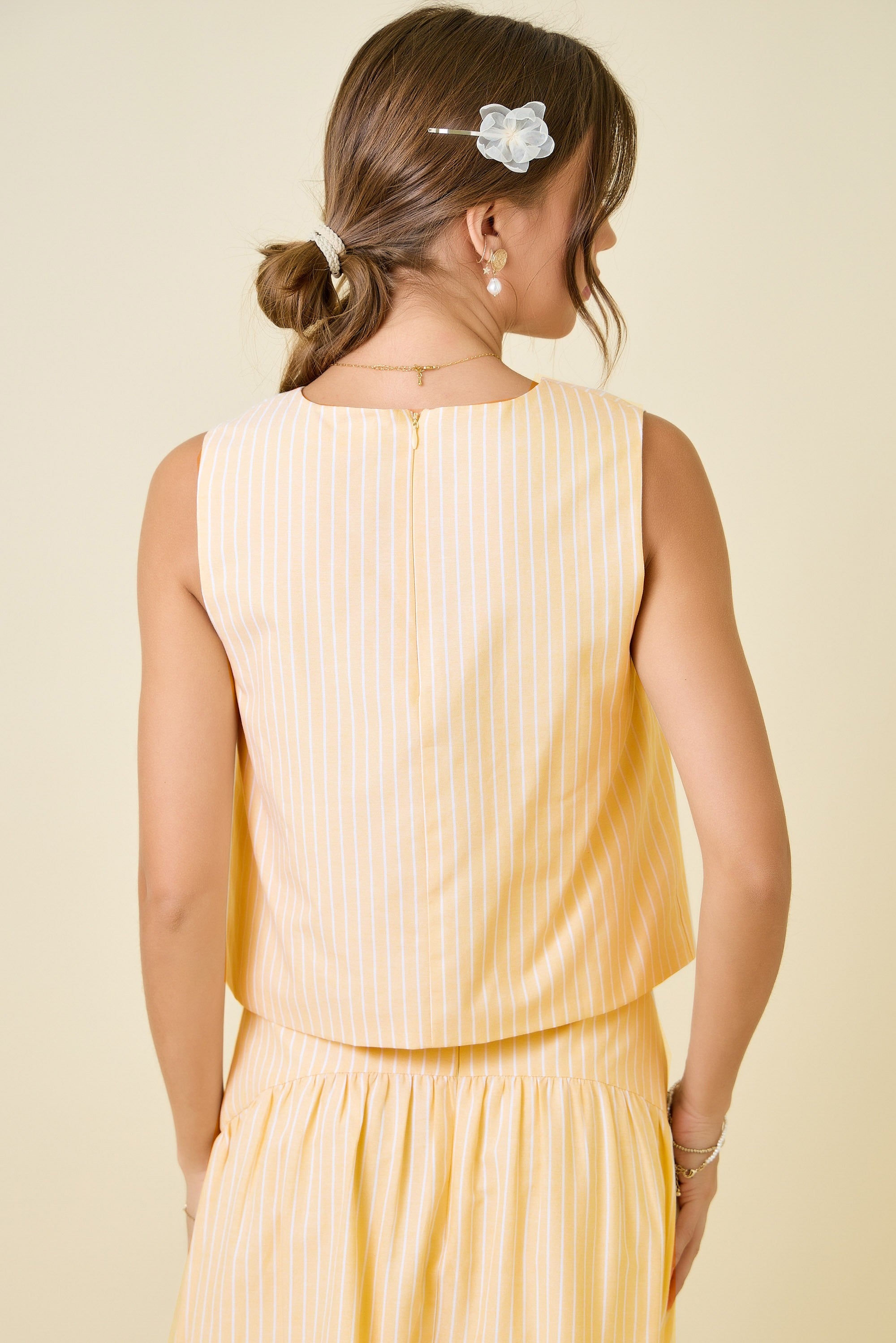 Day + Moon Yellow and White Striped Top. Matching skirt sold separately.