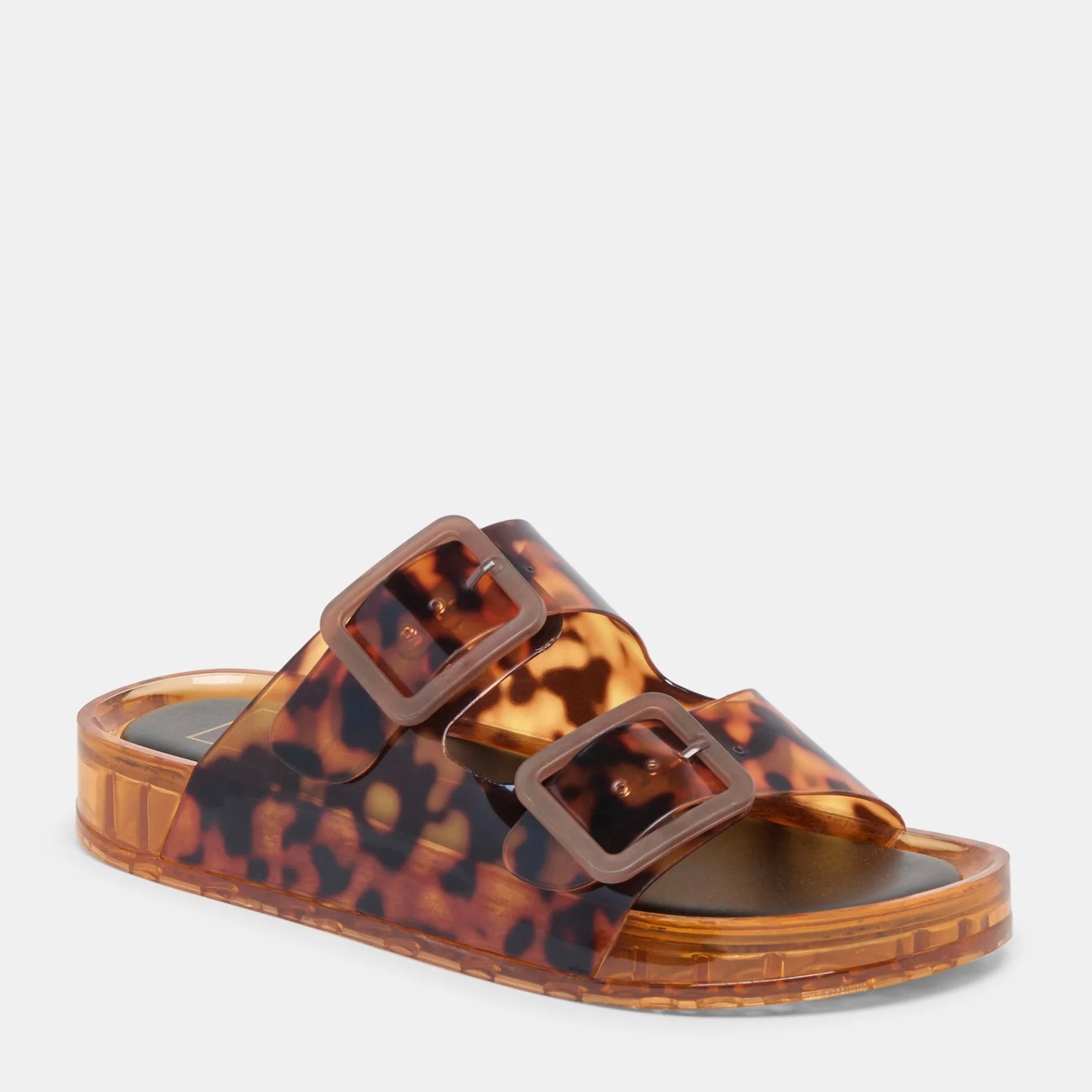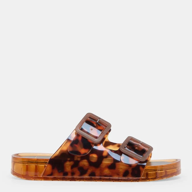 Dolce Vita Julio Sandals in Tortoise Vinyl. This utilitarian summer sandal essential just got a jelly makeover. Meet JULIO – comfortable, versatile, and sustainably sourced in five fun vinyl colorways. Stay on on your feet all day long in these.