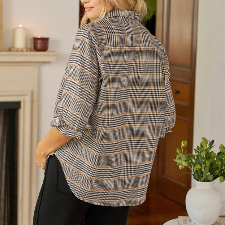 Frank & Eileen Eileen Button Up in camel and black plaid. Our #1 selling Eileen is the easiest-to-pull-off shirt. Designed for a relaxed fit.