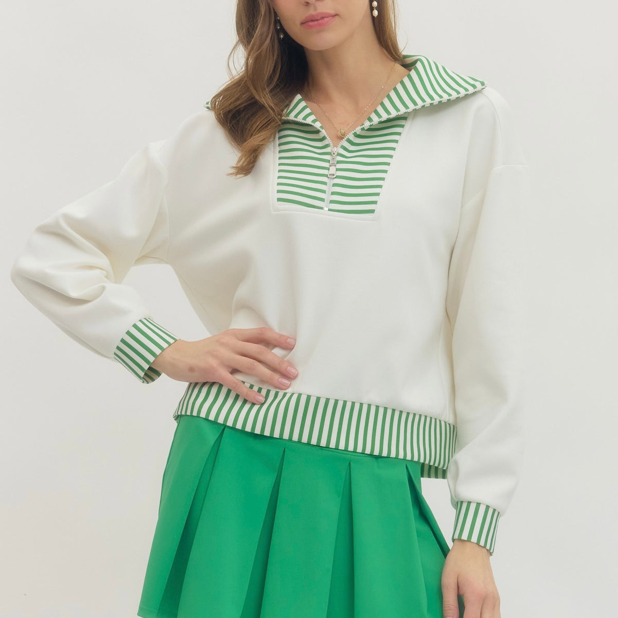 Entro Striped 1/4 Zip-green