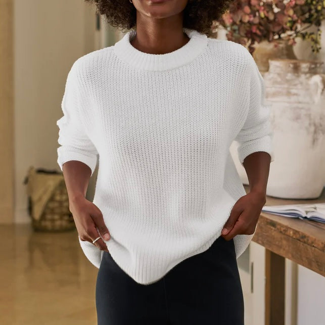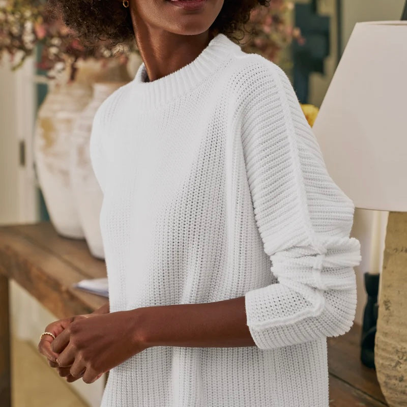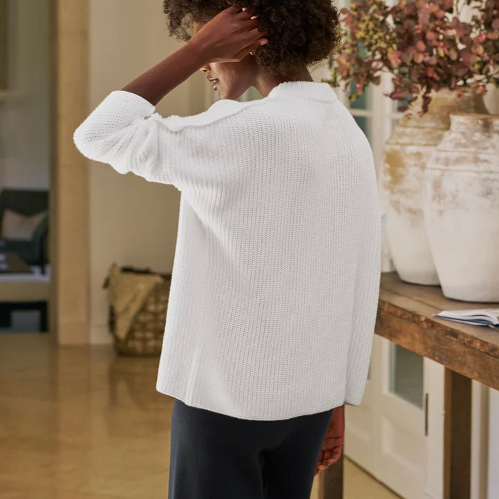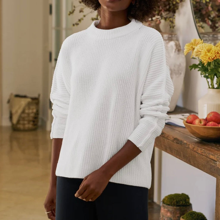 Frank & Eileen Montecito Sweater in White. Designed with a relaxed fit to easily (and elegantly!) pull on over your everyday staples, our Montecito Sweater is luxuriously soft in Pure Italian Cotton.