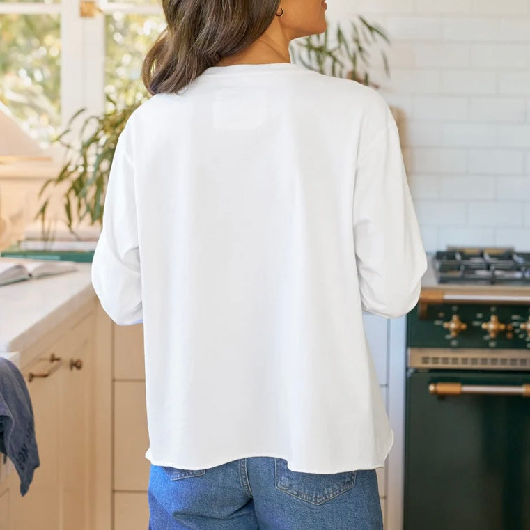Frank & Eileen Quinn Longsleeve Crew Tee in White. A relaxed, ribbed crew neck destined to be your easy-to-wear staple. Designed for a slightly cropped relaxed fit.