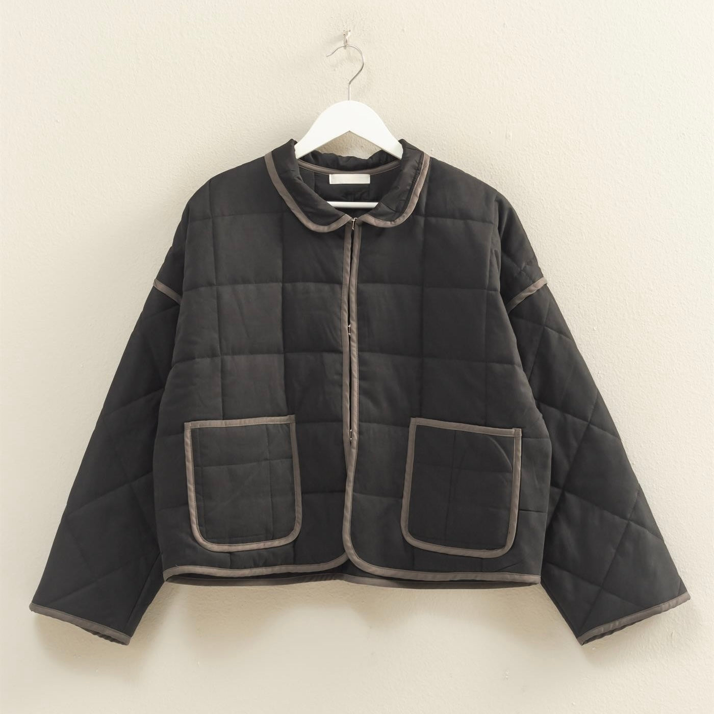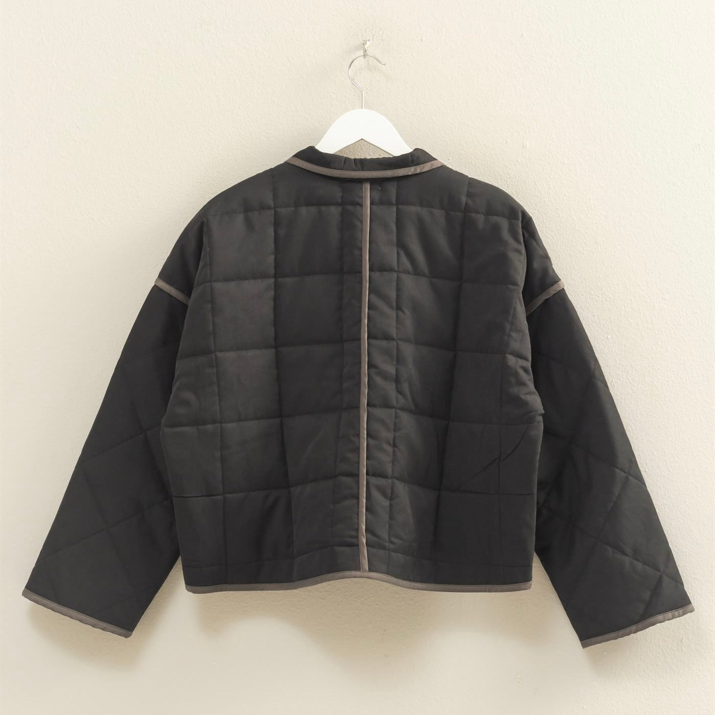 This quilted outerwear is designed with a structured fit and pocket detailing, offering both style and function. It features a smooth lining for comfort on cooler days. Ideal for layering, pair it with a lightweight turtleneck and tailored pants for a sophisticated, seasonal look.