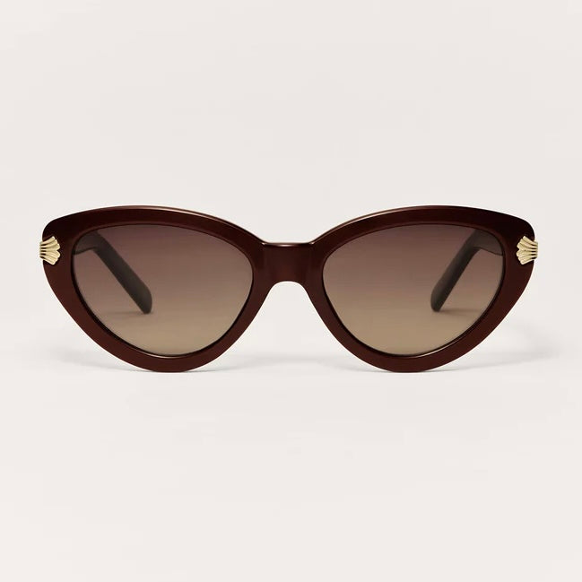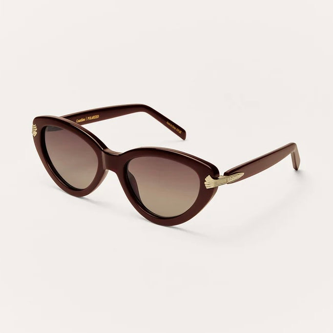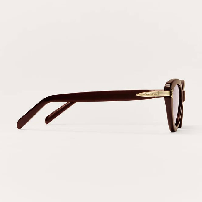 Zsupply Coastline Sunglasses in Vino. This medium sized cat-eye frame completes any look with its timeless shape and chic hinge details.